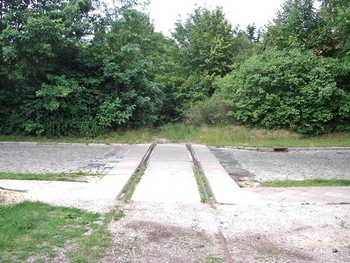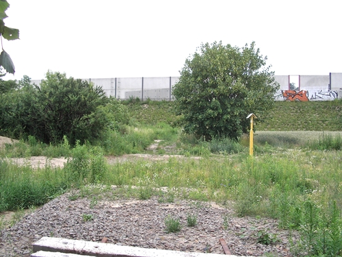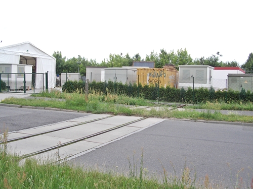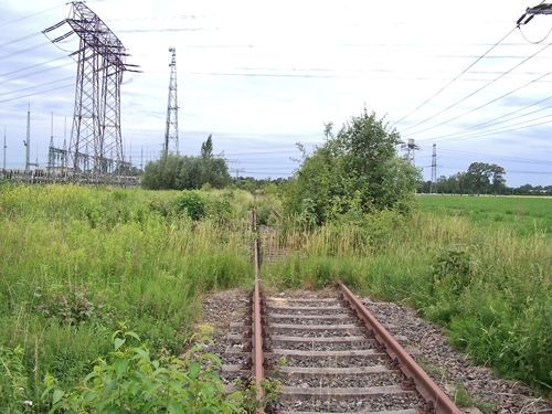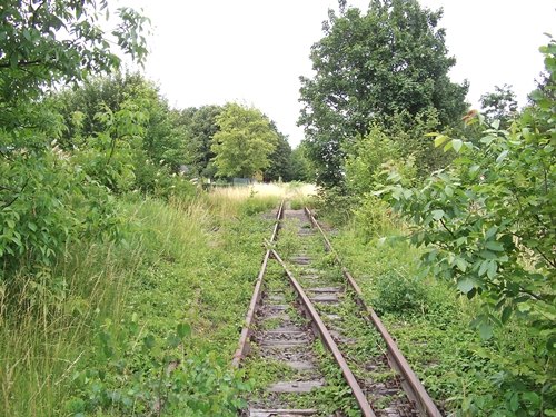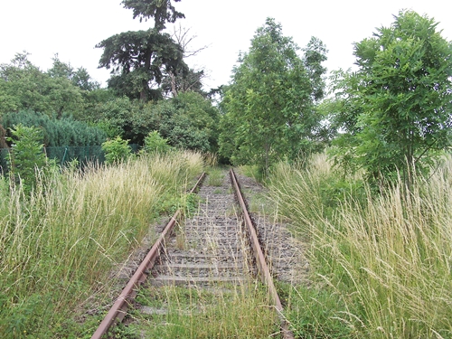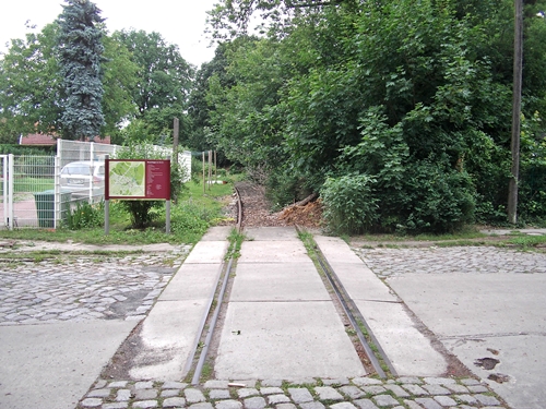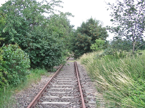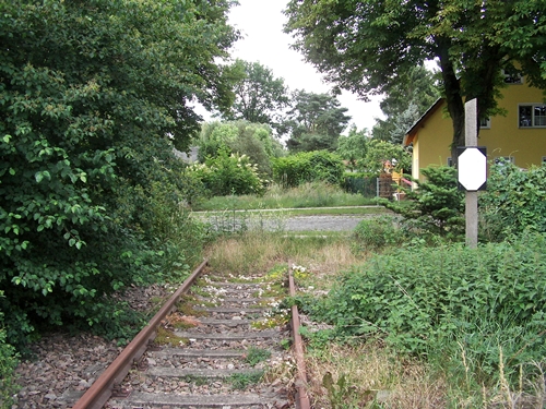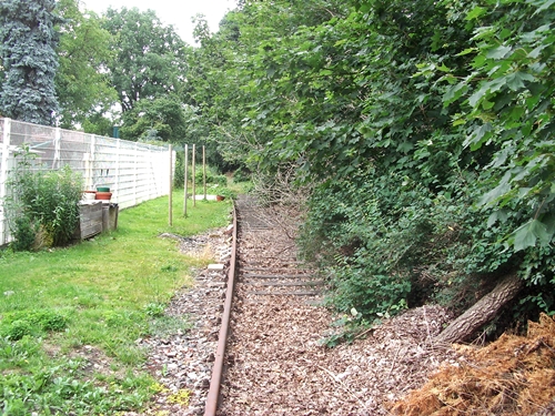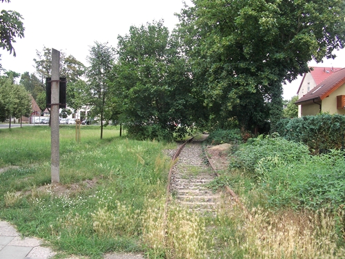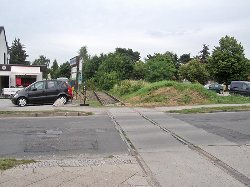 kurz vor dem Bahnübergang Am Friedhof, die Trasse wurde hier schon überbaut