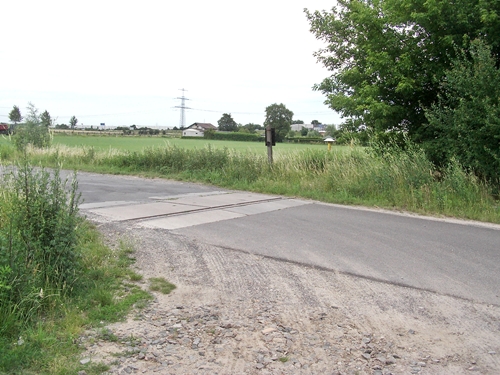 Bahnübergang Zum Erlenbruch, das Gleis endet hier der Rest ist schon lange abgebaut