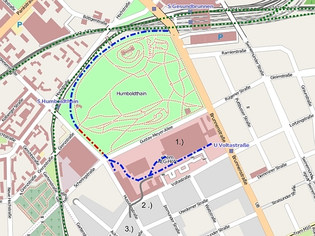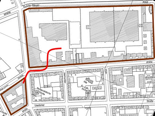 rot eingezeichnet Untergrundbahn ~ Verbindungstunnel