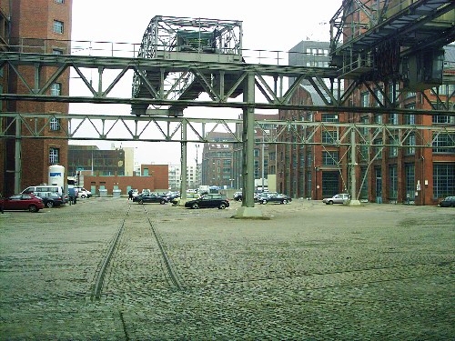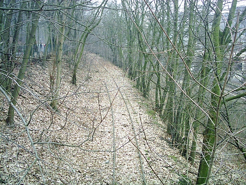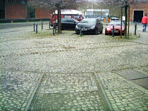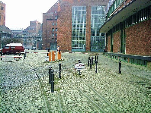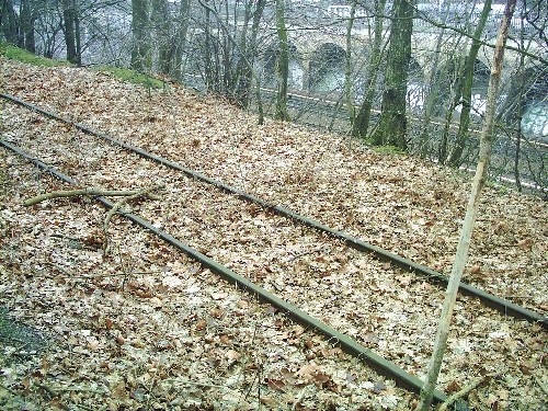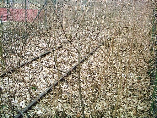 150 m vor der Fußgängerbrücke Humboltsteg, die Reste des Anschlussgleis werden sichtbar