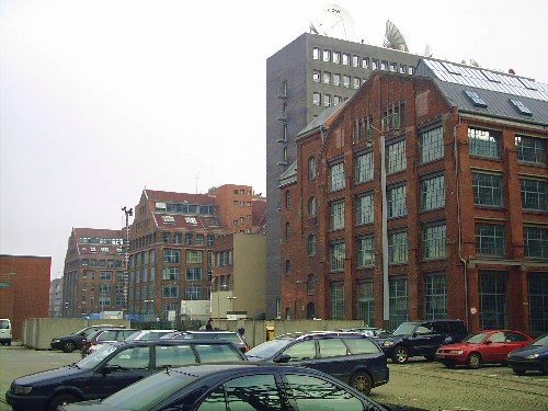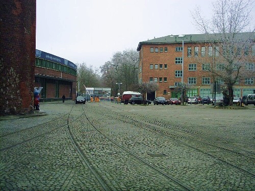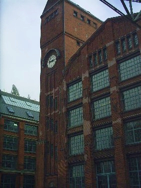 Sicht auf das Werktor ehemalig AEG, Ecke Gustav-Meyer Allee / Hussitenstraße