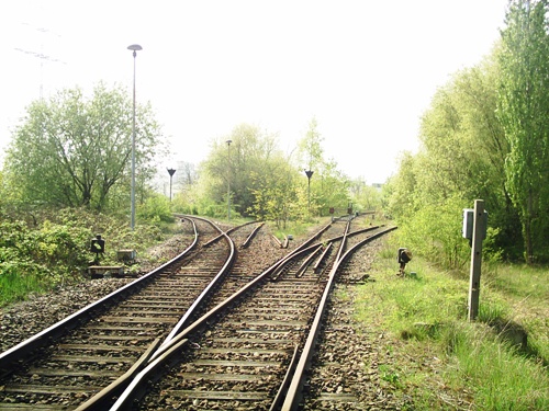 50m Abzweig eines Betriebsanschluss, rechts von der Stelle verläufen weitere Aufstellgleise