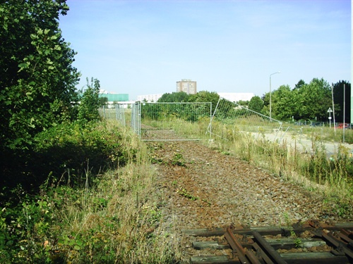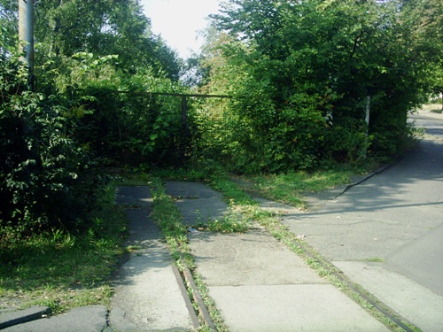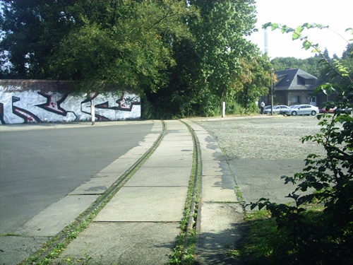 kurz hinter dem Prellbock Abzweig Betreibsanschlüsse Herzbergstraße