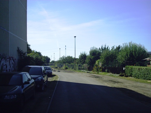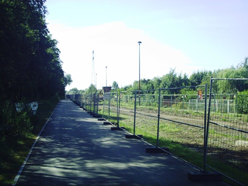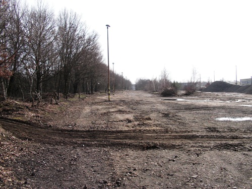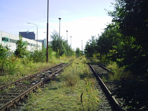 auf der anderen Seite der Herzbergstraße worden die Gleise abgebaut und die Flache wird zur einer Parkanlage umgewandelt, ab hier Beginn des Industrieumschlagbahnhof - IUB