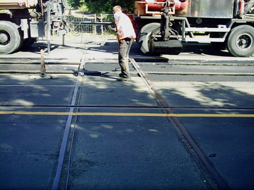 Bahnübergang Herzbergstraße mit Sraßenbahn