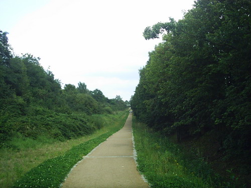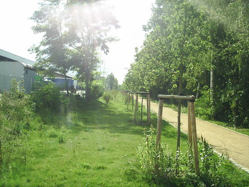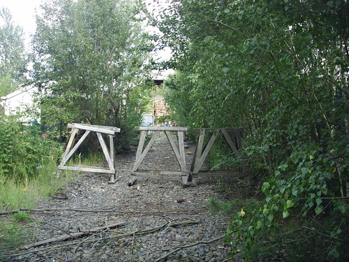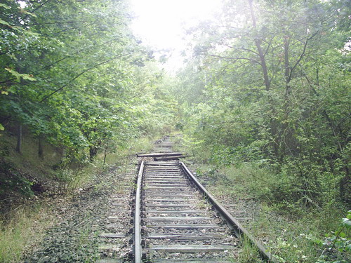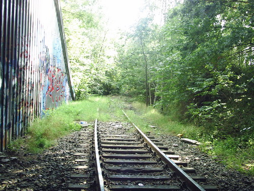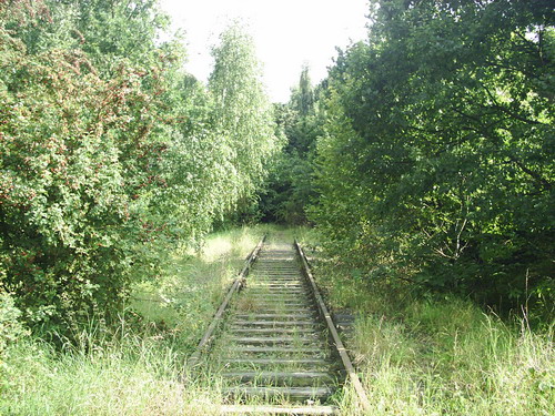 Rückblick auf die Parkanlage, vor der Steigung standt der Prellbock, das Ende der Anschlussbahnsiehe auch hier Link:
