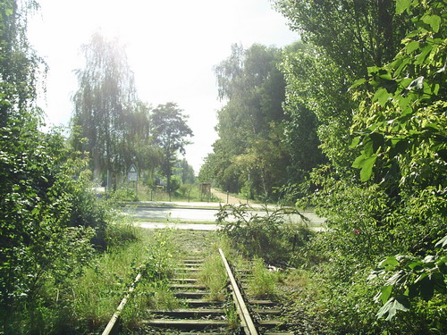 der Bahnübergang Motzener Straße hier liegen auch noch 6m Gleis