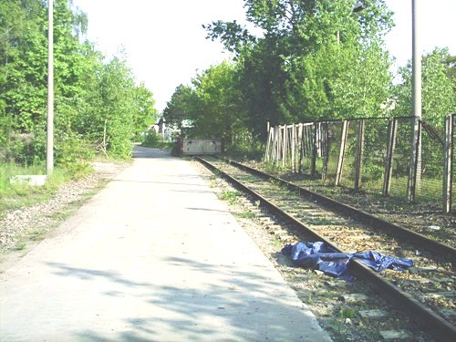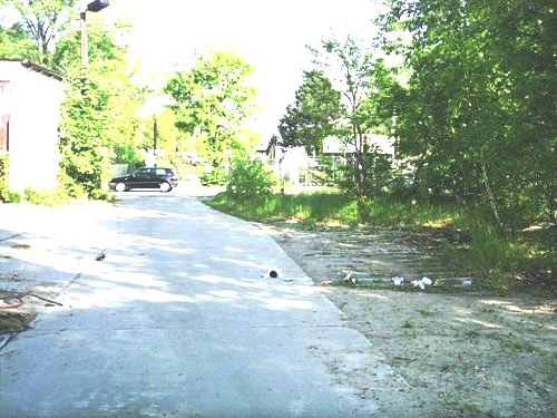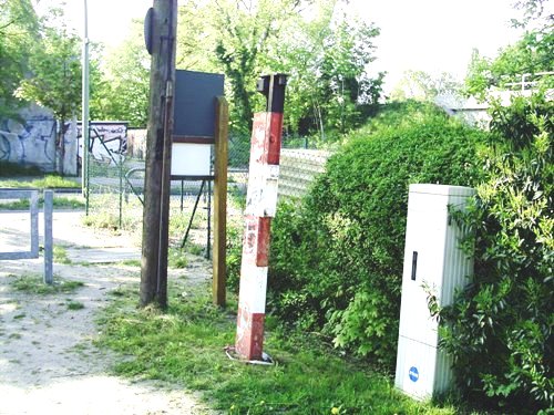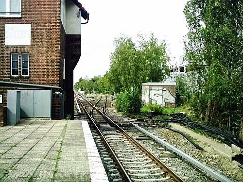 hinter dem Bahnübergang Rixdorfer Straße wieder mit Gleisresten