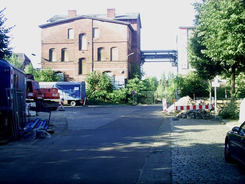 kurz vor der Einfahrt der ehemaligen Berliner Metallhütten- und Halbzeugwerke, in der Flutstraße