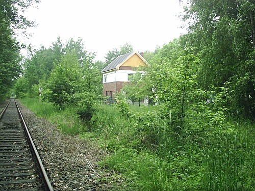 Blick auf ein altes Wärterstellwerk Rsb, heute Wohnhaus