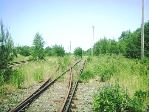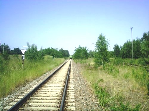 Blick nach Süden, das Gleis ist heute an den Bhf Grossberen angeschlossen, rechts würden die Gleise der neuen Anhalter Bahn verlaufen, das Bild entstand vor dem Bau
