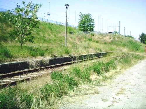Rest vom alten Bahnsteig, im Hintergrund die neue Anhalter Bahn, mit dem neuen Bhf Teltow