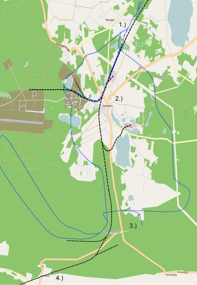 1.) Rehagen-Klausdorf, 2.) Sperenberg, 3.) Kummersdorf Gut, 4.) Schönefeld bei Luckenwalde