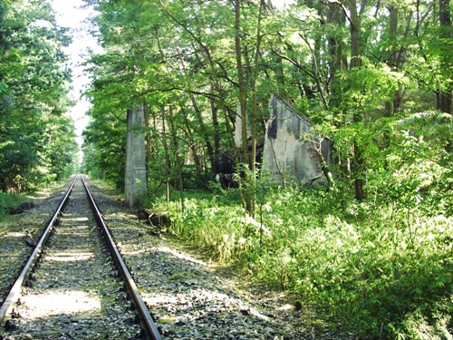 an der Straße Kummersdorf Gut - Sperenberg auf dem Bahndamm, auf der Standortseite sind Keine Brückenpfeiler Reste