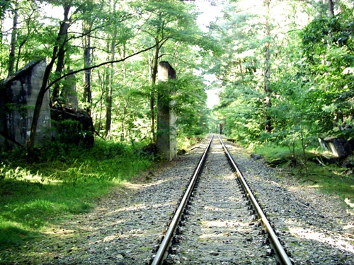 Gleise von der Feldbahn in Kummersdorf Gut, der Bahnhof der Feldbahn liegt immer noch im Sperrgebiet