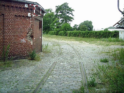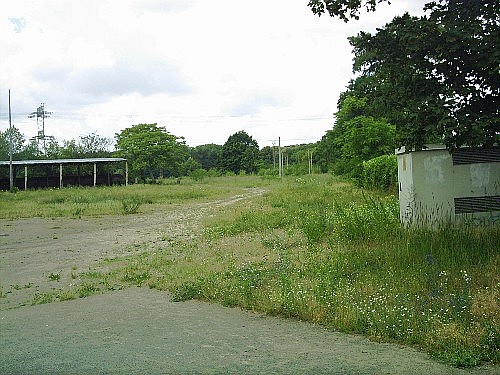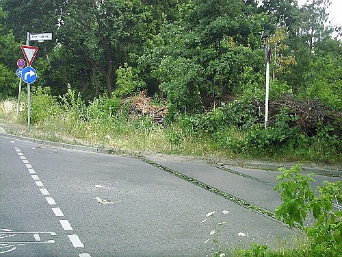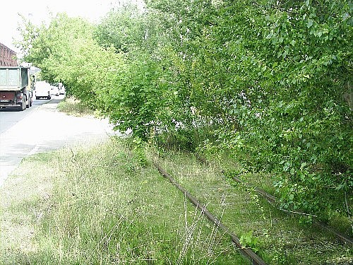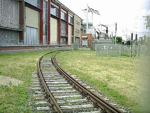kurz vor der Überfahrung der Rummelsburger Landstraße zum Kraftwerk, die Masten von der Bahn stehen auch hier noch