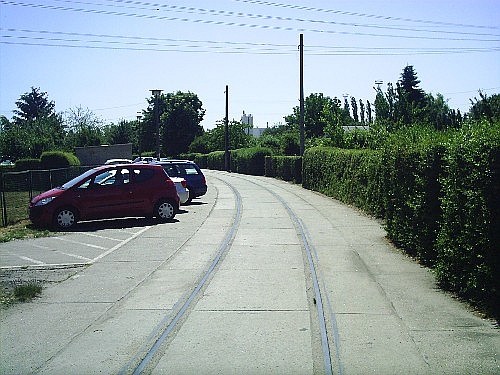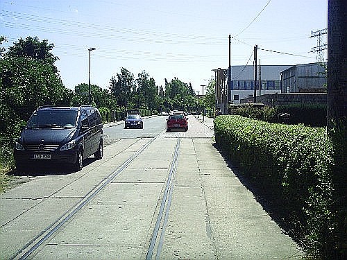 gleiche Stelle, links Straßenbahn und rechts die Industriebahn