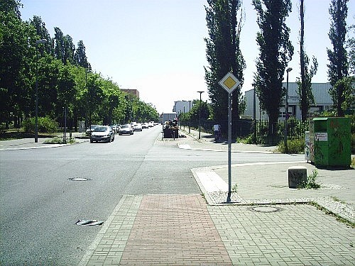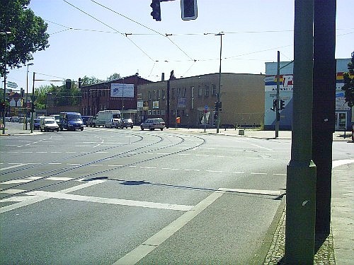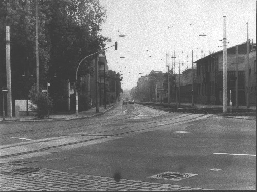 auf der Nalepastraße mit Straßenbahngleisen, rechts war die Industriebahngleistrasse