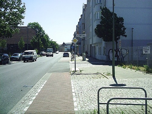 rechts der Straße Nalepastraße/Wilhelminenhofstraße, wurden die Gleise entfernt und Parkbuchte und ein Geh- Radweg angelegt