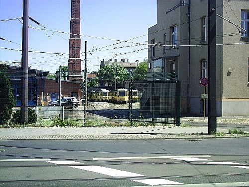 Strassenbahndepot in der Nalepastraße, hier wurden auch die Fahrzeuge der Industriebahn untergestellt, das Depot hat zwei Hallen, Halle 1