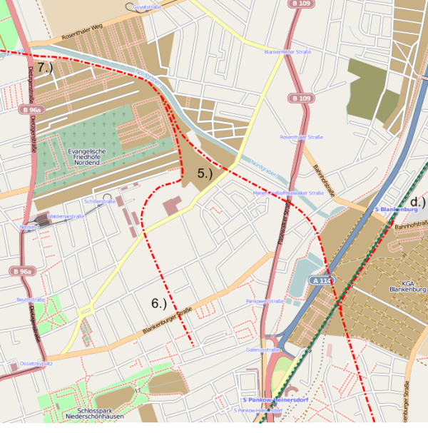 5.) Gbf Buchholz, 6.) Gbf Niederschönhausen, 7.) Gbf Nordend, d.) Bhf Blankenburg an der Stettiner Bahn