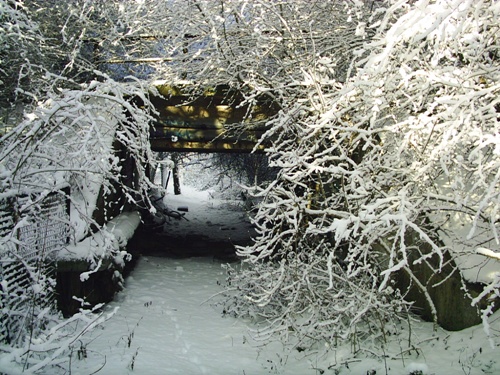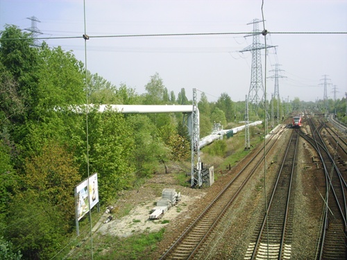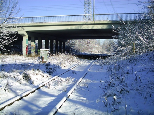 ein kurzes Stück weiter eine Brücke, es war Weg für Fußgänger, nach rechts wurde die Strecke überbaut