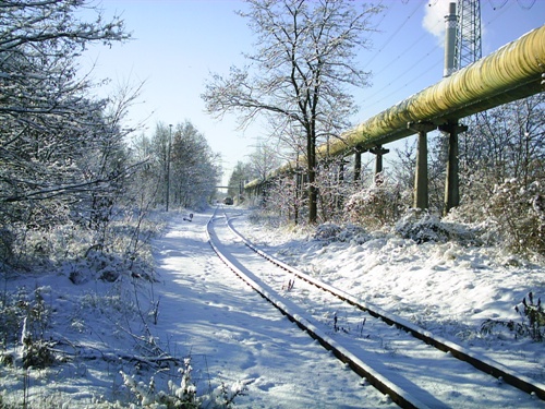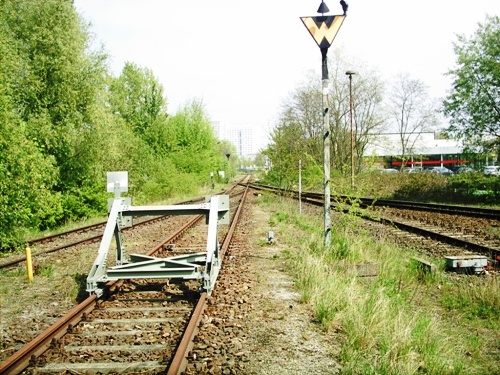 dieser ist noch als Anschlussgleis " in Betrieb ", eigentlicher Startpunkt der Industriebahn (Km 0,0)