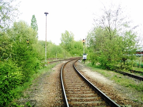 das Gleis schwenkt nach links zum Gbf Nord-Ost ein und ca. geradeaus alte Führung der Wriezener Bahn