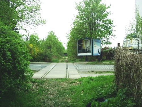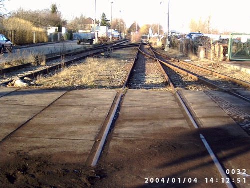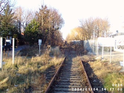 2004, hinter dem Bahnübergang, 2009 waren es nur noch Schwellenreste
