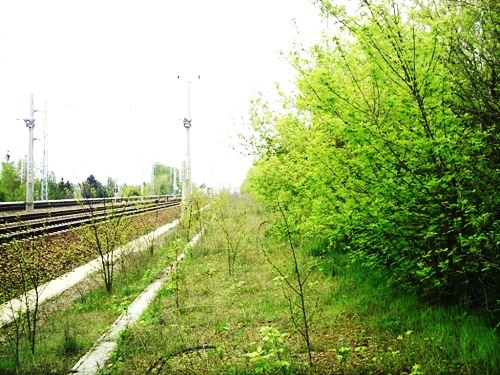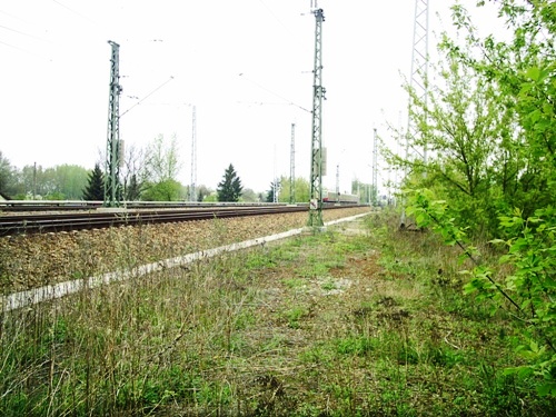 auf dem Planum der Industriebahn, man achte auf der Masten