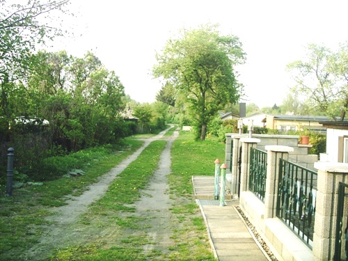 in mitten von Kleingärten, Bahntrasse Gbf Nordend - Gbf Niederschönhausen, heute der Zoppoter Weg