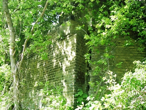 im ehemaligen West-Berlin Bereich steht noch der Brückenpfeiler für die Brücke über die Heidekrautbahn