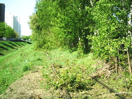kurz vor dem ehemaligen Gbf Rosenthal Nord an der Mönchmühler Sraße, die Bahntrasse steigt zum Damm an