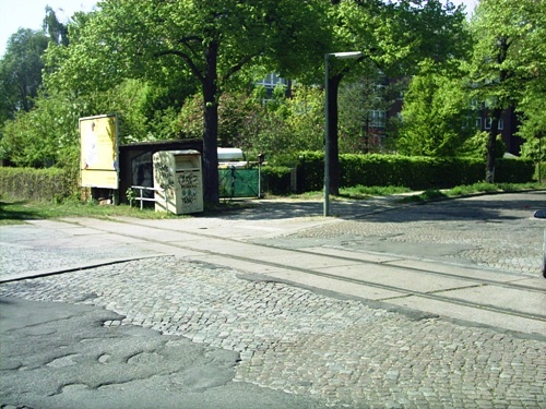 Bahnübergang Finsterwalder Straße, wieder Ende der Gleise