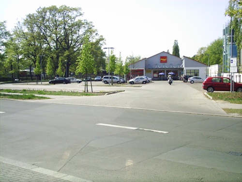 Blick über die Hermsdorfer Straße, auf dem Gelände vom Supermarkt befand sich der Gbf Wittenau