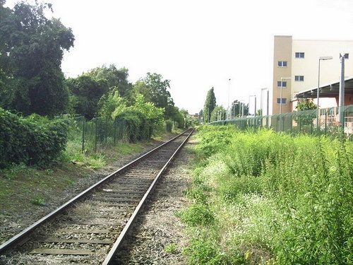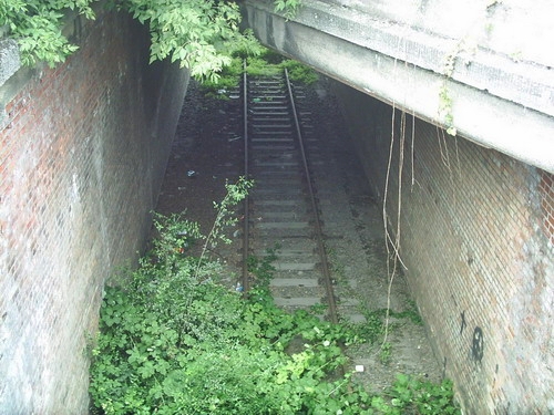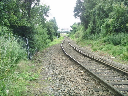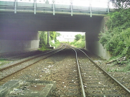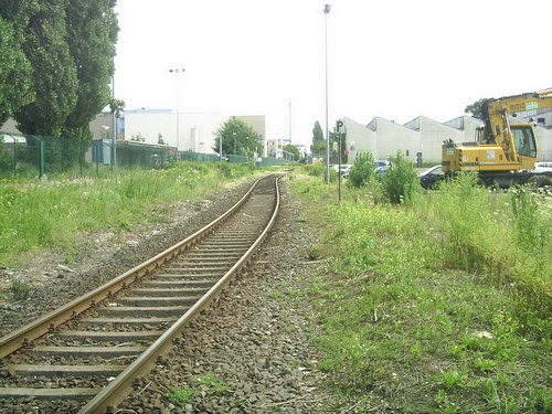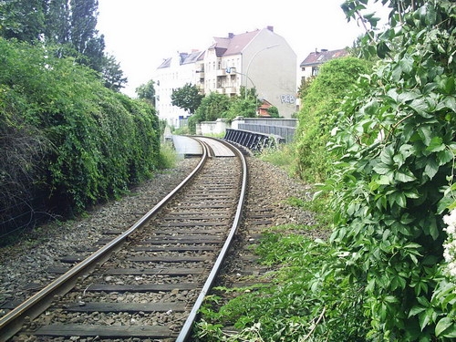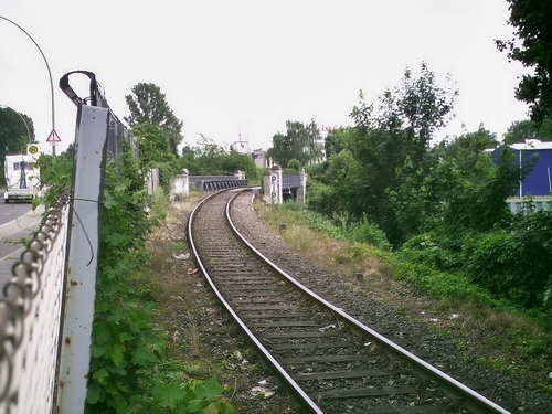 Blick von der Brücke Grenzallee, links das Gleis von der Lahnstraße nordwestlich, rechts das Gleis des nordöstlichen Teils der Strecke