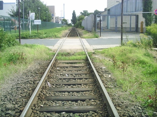 Bahnübergang und Einfahrt zum Zigarettenhersteller