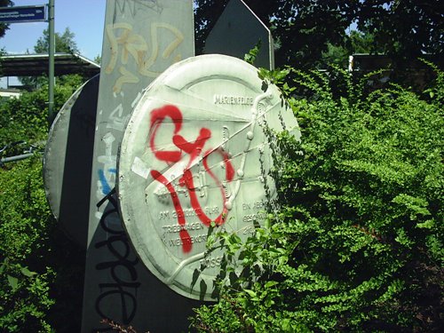 Gedenktafel an den Weltrekord 1903, im schlechten Zustand