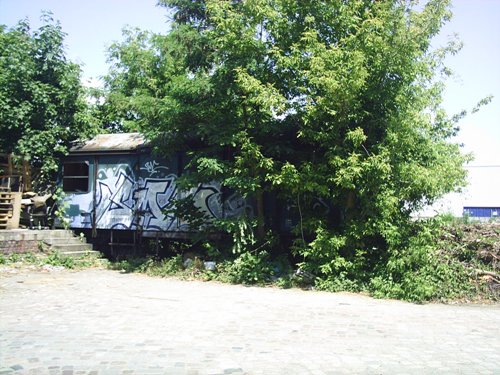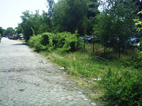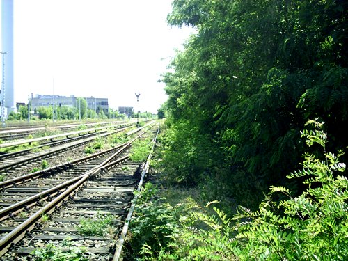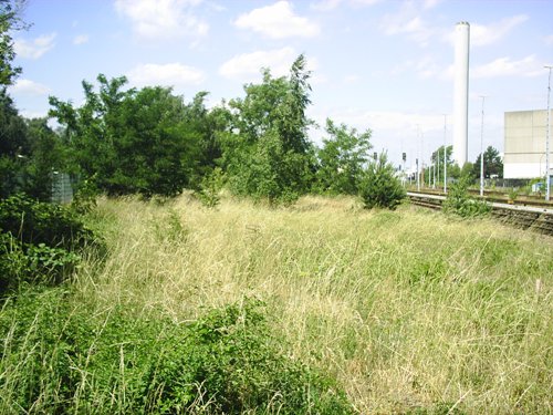 die Ladestraße nördliche Blickrichtung, links unter dem grün alte Gleise