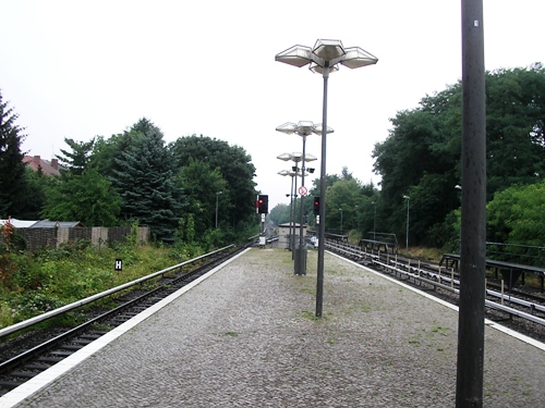 Blick nach Norden im S-Bahnhof Lichtenrade, links befindet sich das Planum der Militärbahn
