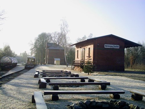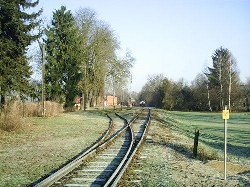 Blick vom Bahnhof Mellensee-Saalow Richtung Zossen, die Weiche wurde von der ERLEBNISBAHN GmbH & Co. KG wieder eingebaut, früher war auch der Bahnhof auch Ausweichstelle wurde aber zurück gebaut
