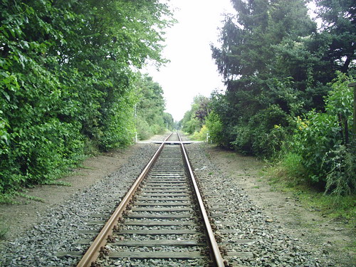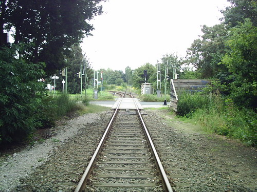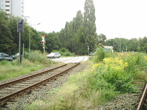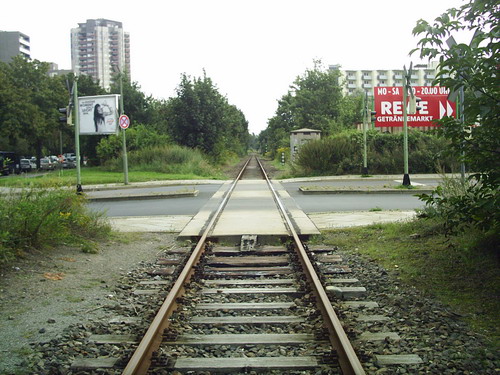 die Strecke Richtung Kanalstraße in ca. 200m folgt der Bahnübergang Zwickauer Damm