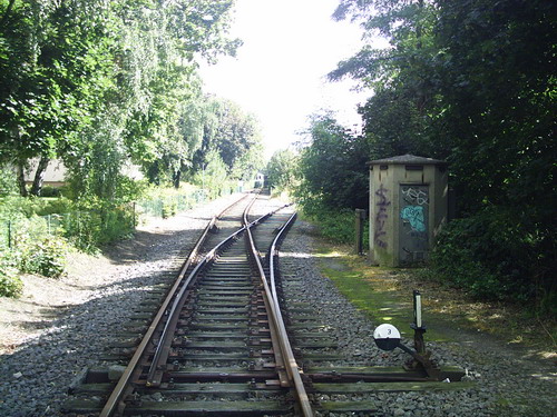 Abzweig der Strecke Richtung Kanalstraße Gleis links und rechts das alte Gleis ist die Hauptstrecke Richtung Rudow - Mittenwalde heute Ausziehgleis ca. 150m