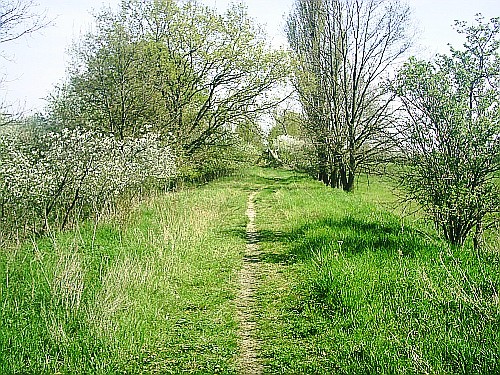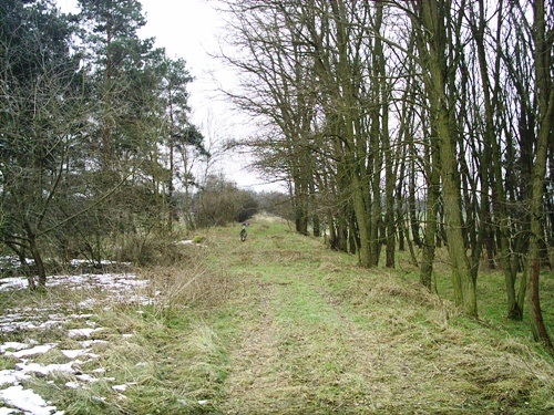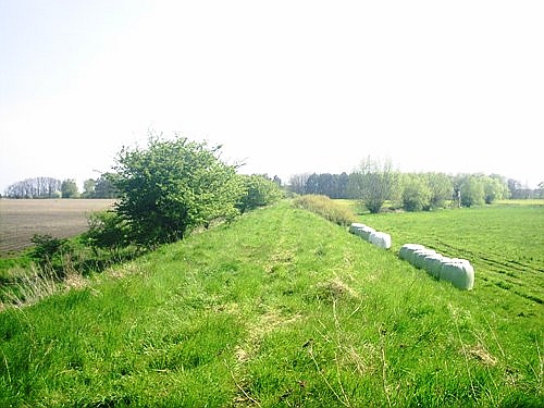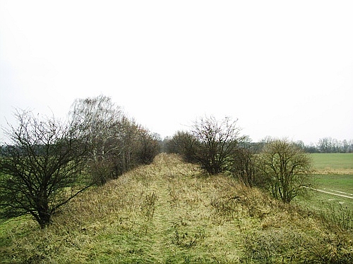 2 km hinter dem Bahnhof Brusendorf, verläuft die Bahntrasse dann auf einem leichten Bahndamm