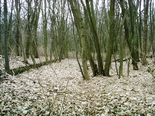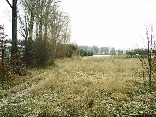 hinter dem Wald verläuft die Bahntrasse auf einen Damm ca 2 m, Blick Richtung Mittenwalde