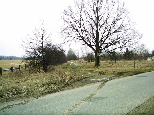 hier war mal ein Bahnübergang, Straße Brusendorf - Klein Kienitzkurz vor dem Bahnhof Brusendorf