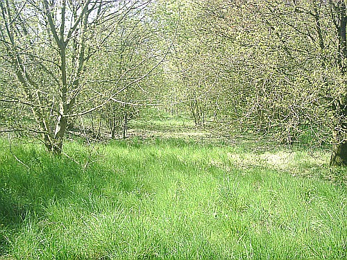 Blick Richtung Bhf Groß Kienitz, dichtes Moorland bzw. die Bahntrasse ist zugewachsen