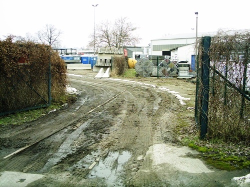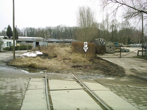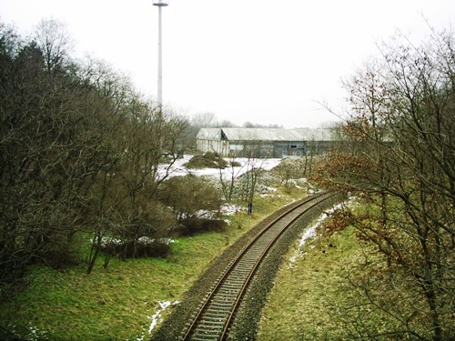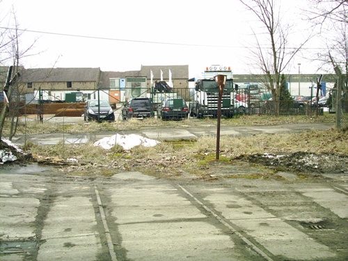das abbiegende Gleis führt in dieses Betriebsgelände