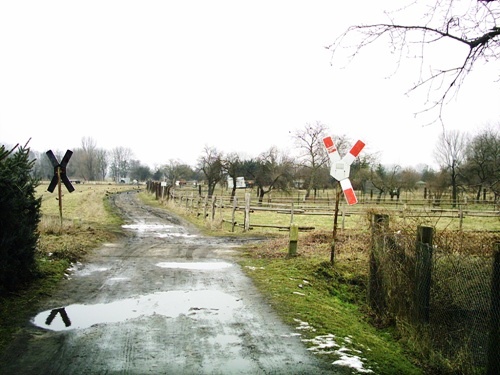 auf halber Runde um Mittenwalde ein Bahnübergang