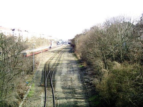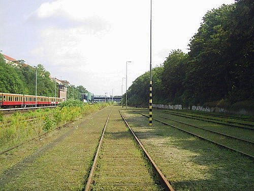 entlang der Strecke, rechts hinter dem grün die Ringbahn S41/42/46/47